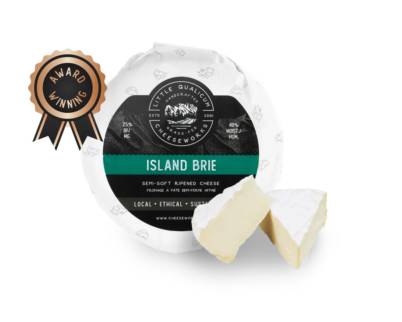 With a creamy texture, velvety white rind, and mellow mushroom overtones, our award-winning Island Brie pairs beautifully with fresh fruit or spicy preserves. This truly artisan cheese has gained recognition for its perfectly developed snow-white rind, lusciously creamy texture, and delightfully nuanced earthy flavours.